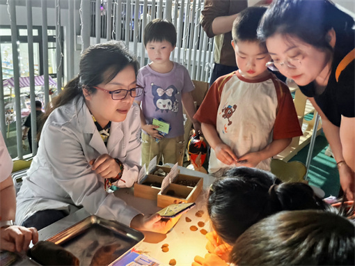 “哇,原來中草藥還能趕走小蟲子!”孩子們學(xué)著稱量具有驅(qū)蟲避瘟功效的中藥粉末,仔細(xì)裝入自己挑選的五彩香囊。一個小男孩高高舉起他做的“粽子”形香囊,興奮地向疾控科的老師們展示:“老師快看,這是端午節(jié)的中藥粽子!”清脆的童音里,滿是發(fā)現(xiàn)中藥妙用的新奇與歡樂。