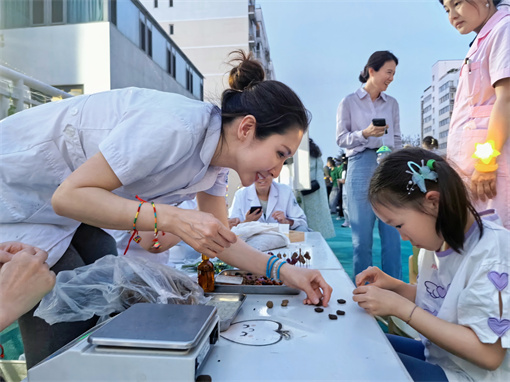 溫暖的星星燈下,孩子們圍坐一圈,小臉寫滿專注,家長們也興致勃勃。在王謹(jǐn)慧老師的指導(dǎo)下,大手小手齊合作:揉捏藥泥,模具壓出可愛形狀,再用彩繩串起一顆顆中藥香丸。悠悠藥香在彩繩間輕盈舞動,飄散在歡樂的空氣中。這不僅是一次手作體驗,更是中醫(yī)藥文化在親子互動中的溫馨傳遞。