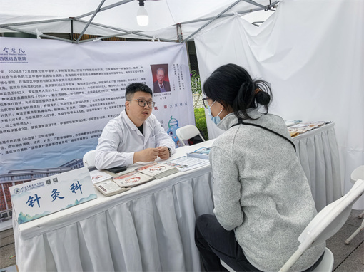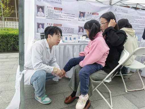 義診團(tuán)隊(duì)由來(lái)自針灸科、治未病科、康復(fù)醫(yī)學(xué)科的4名醫(yī)生,護(hù)理部、婦科的2名護(hù)理人員及2名職能科室保障人員組成,于上午9時(shí),在賽事終點(diǎn)嘉年華區(qū)域義診服務(wù)點(diǎn)位正式開(kāi)展服務(wù)。
