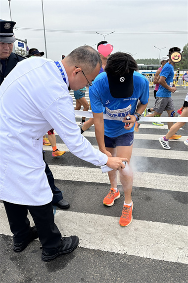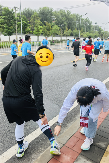 在團(tuán)隊(duì)的緊密協(xié)作下,突發(fā)狀況都得到了及時(shí)、有效的處置。無(wú)論是針對(duì)參賽者突發(fā)的胸悶、低血糖等急性癥狀,還是意外擦傷、肌肉拉傷等運(yùn)動(dòng)損傷,保障人員都能?chē)?yán)格遵循預(yù)案流程快速介入、精準(zhǔn)救治,既保證了參賽者生命安全,也全力護(hù)航他們順利奔向終點(diǎn)。